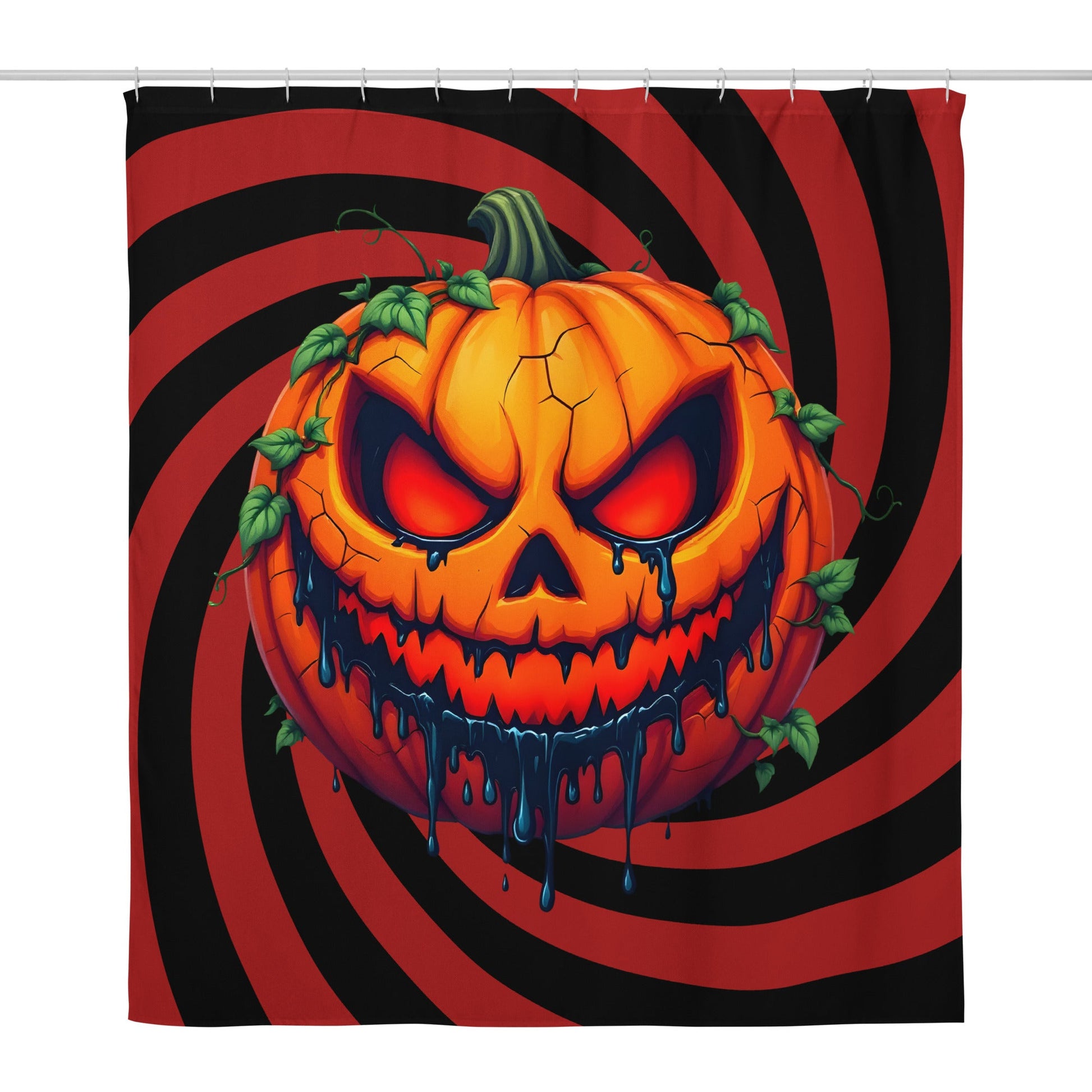 Evil Jack-o-lantern on Black and Red Spiral Shower Curtain