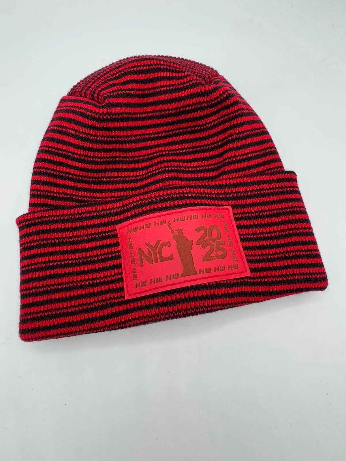Haakwear NEW YEAR 2025 NYC, Modern H Stitch Contrast Cuffed Beanie / Hat (Patented Design) Black / Red, Made in USA (Limited Edition)