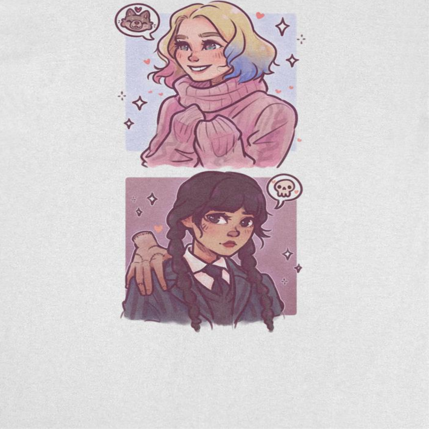 Check out this cool Wednesday Ghouls Stacked White T-Shirt from the enormously popular Netflix Wednesday series. Each shirt is a white 100% cotton, standard-fit, heavyweight tee. Officially licensed.